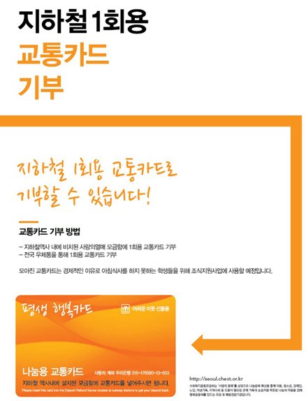 근데!! 이 1회용 교통카드를 우체통이나 지하철역 192곳에 설치된 모금함에