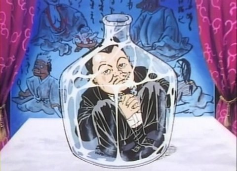 이 애니메이션에서 미도리는 애니메이션의 중후반부에서병속에 들어가는 마술을 보여주는 최면술사와 사랑에빠지게된다.