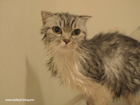 뜨거운 남자냥이어서 그런지 데운 물 뿌리면 냥~ 냥~ 뿌리지 않으면 안 울고~ ㅎ