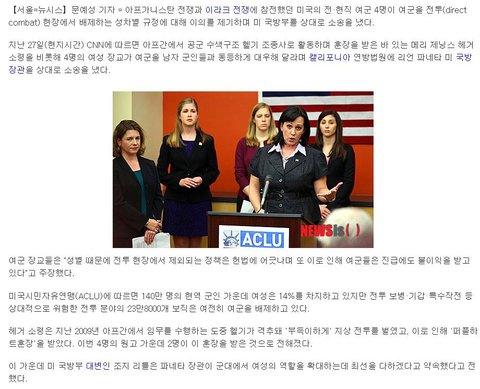 서양녀: 우리도 엄연한 군인인데 왜 여자란 이유로 전쟁안보내냐 ??? 난 당당하게 내 할일을 다하고 진급을 받고 하겠다. 참여도 안시키고 진급도 잘안되는건 불합리하며 헌법에도 위배 된다.