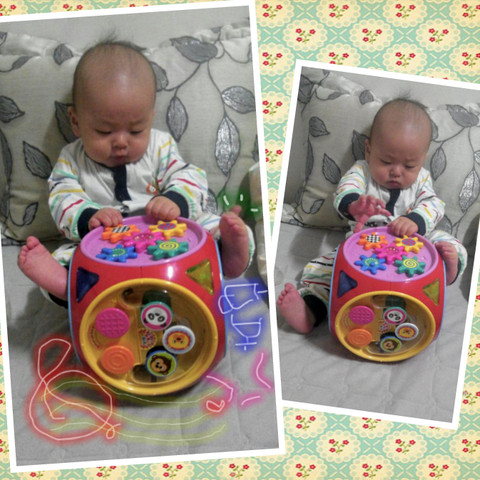 아직 스믈스믈 배밀이를 하지 않네요.. 뒤집기는 빨리 하던 녀석이 말이죠.