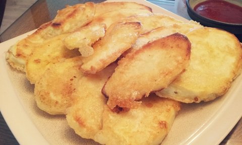 튀겨서 식기전에 소금조금 뿌려줫더니 달고 짭짤하고 맛잇음!