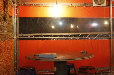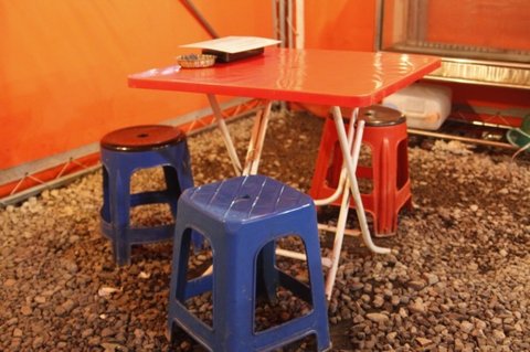 바닥이 자갈이예요. 플라스틱 의자 잘못앉으면 몸의 균형이 깨어지며..