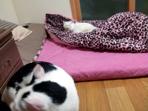 물이랑 사료는 이쪽에 있다쉬먀 ..