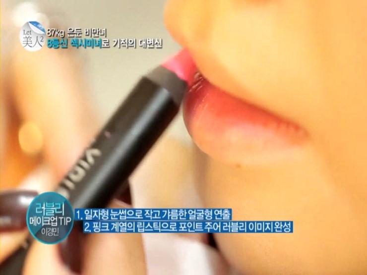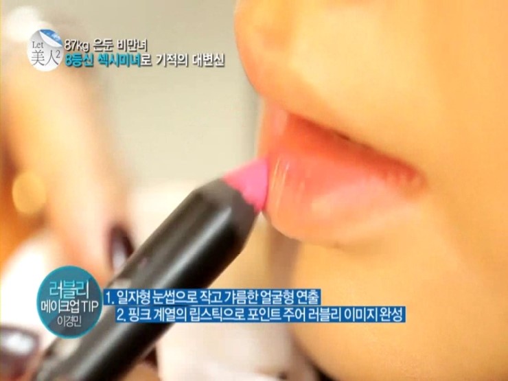 핑크빛 립크레용으로 비만은둔녀 이보애씨의 러블리한 매력을 물씬 살려주었답니다.