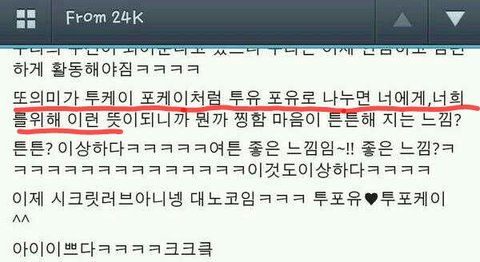 그리고 24K 공식카페 From.24K 에서 멤버 '대일'분이 올리신내용중에