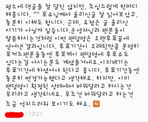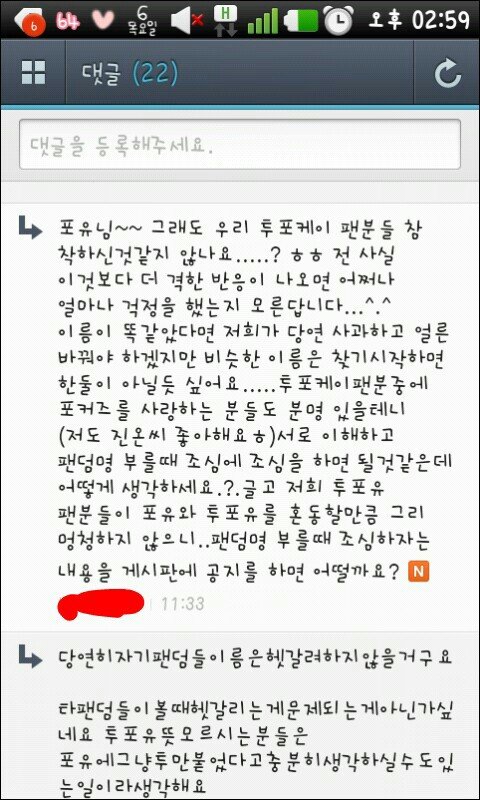 그리구 투포케이팬분들께서 저희 댓글들이 무례하시다고 하시는데 저희는 어느부분이 무례한지