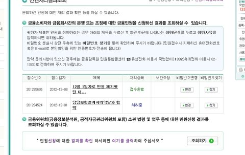 처리결과가 궁금해서 금감원 홈페이지 가서 민원제기내용 보니
