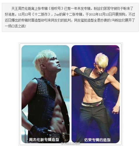 "주걸륜이 최근 발매된 신규 앨범 재킷에서 2PM의 우영의 패션을 거의 그대로 따르고 있으며