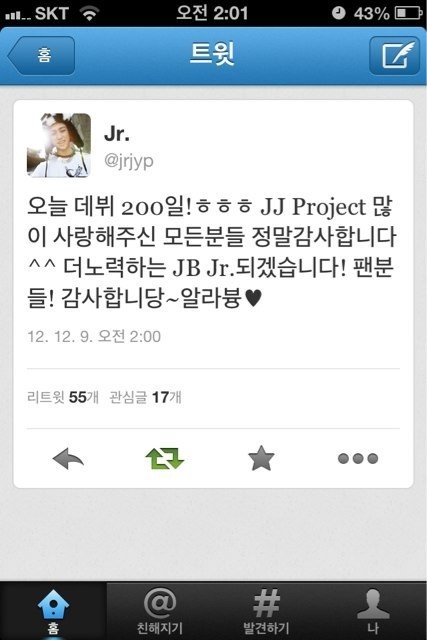 JJ프로젝트 200일 기념으로 팬들에게