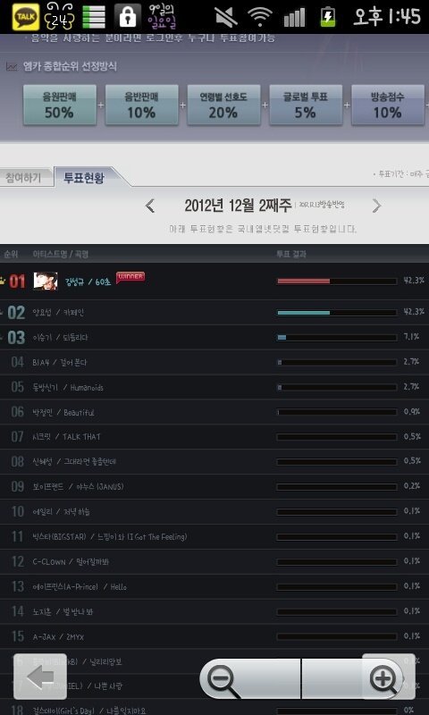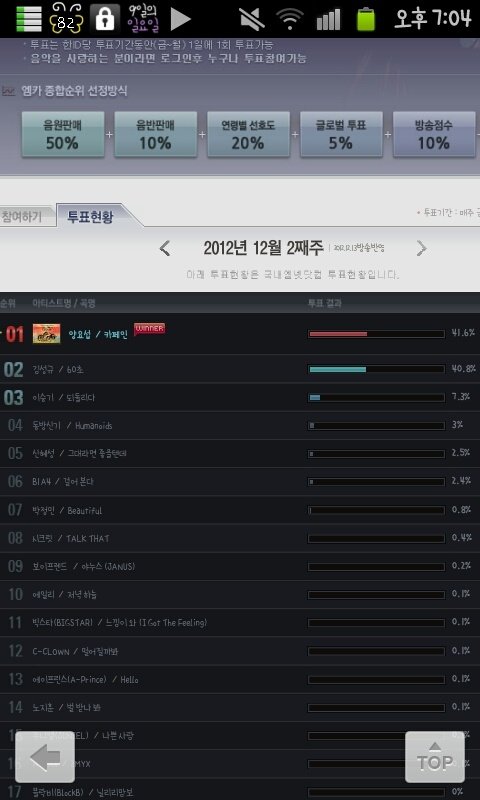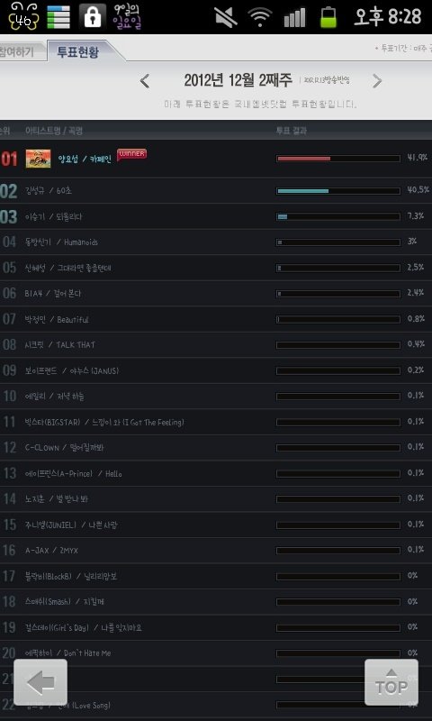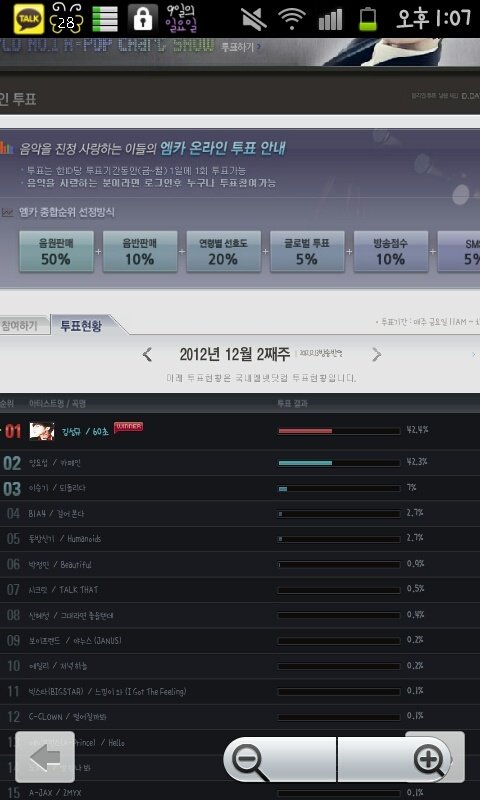 순위가 변동됬으면 변동 된거지 투표퍼센테이지를 왜 내려요