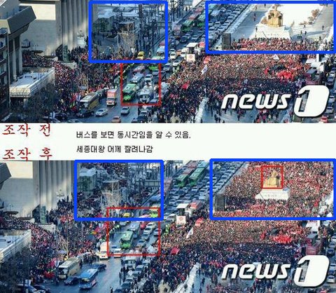 '조작'된 박근혜 광화문 유세사진, 원본 보니…