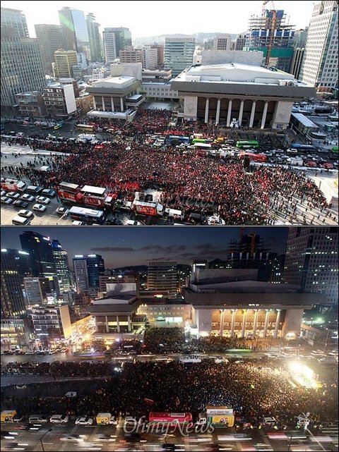 경찰 추산, 박근혜 1.5만 : 문재인 1.1만... 양쪽은 3~3,5만 "서로 이겼다"