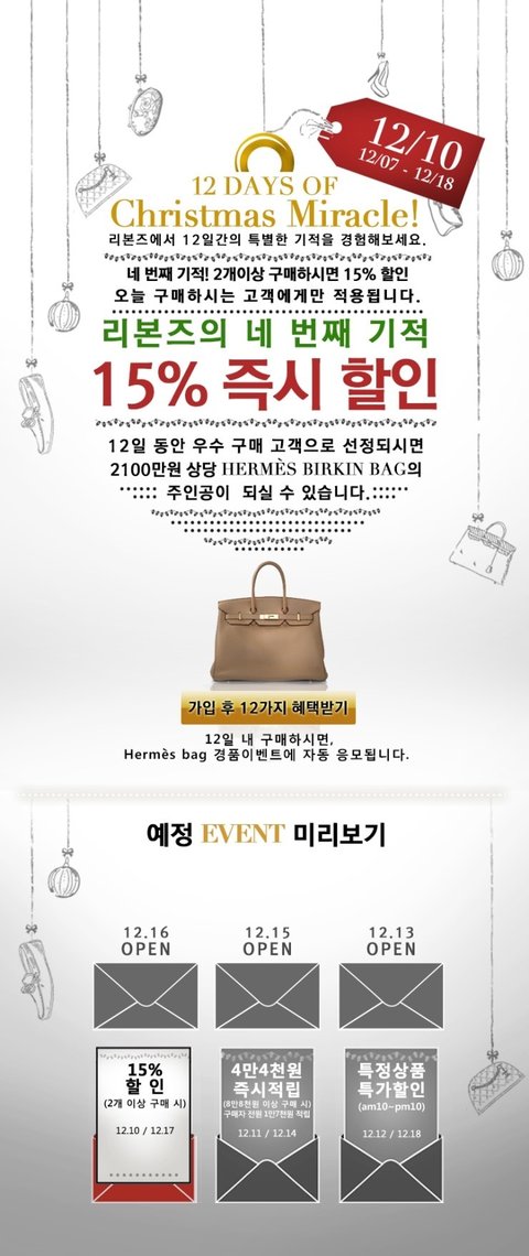 리본즈라고 명품 프라이빗 쇼핑몰이 있는데, 이번에 연말 세일이 시작되었더라구요