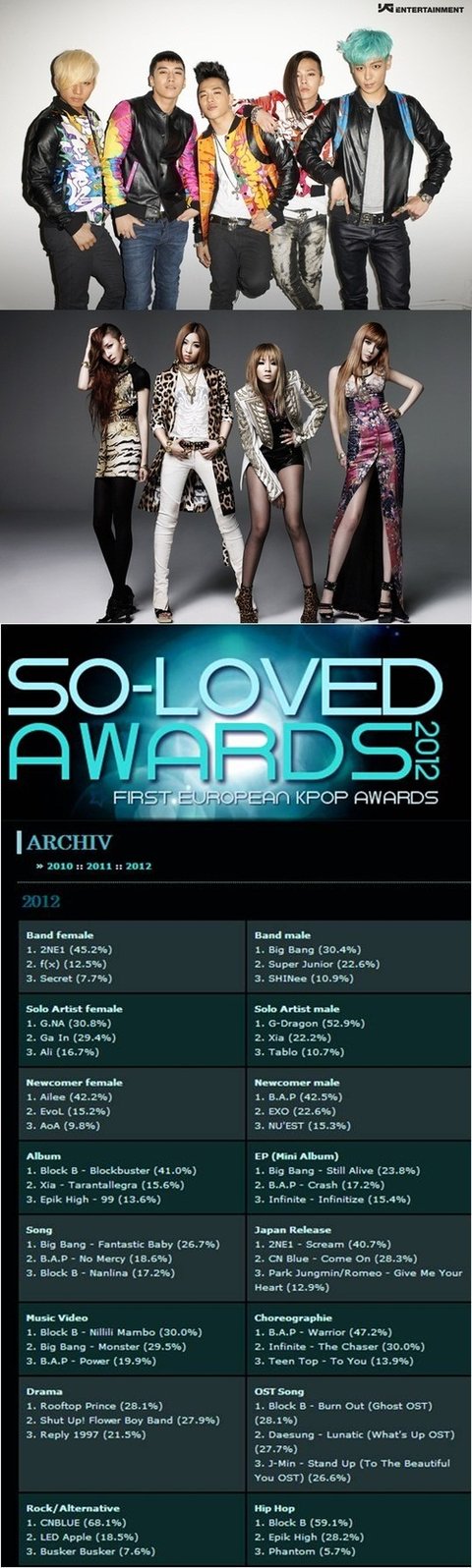 유럽에 거주하는 총 11만 984명 참가해 투표한 결과, 빅뱅은 남자 솔로, 남자 밴드, 미니 앨범, 송 부문에서 1위를 차지했고 뮤직비디오 부문에서는 2위를 차지해 5관왕에 올랐다.