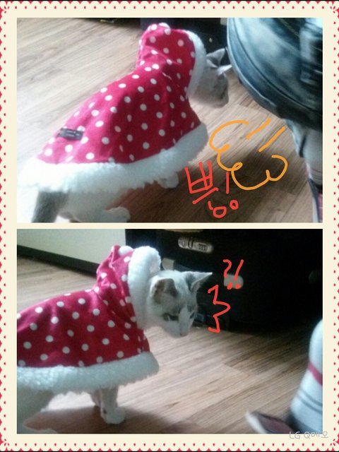 비비는 망토 둘러주니 어색한지 계속 벗어버려서 ㅋㅋ 마늘이에게 입혀주고 사진을 찍었는데