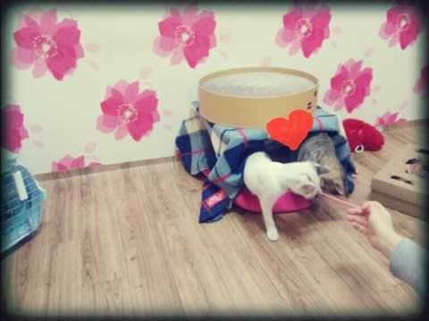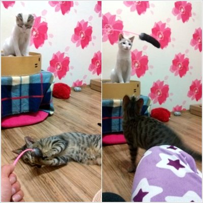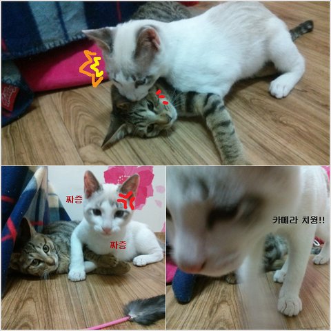 요즘 많이 발전했어요 ㅎㅎ 장난감 하나로 같이 놀기도 하고 하악질도 줄어들고!!!