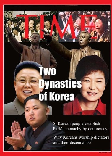 그럼에도 우리나라는 이런 현실을 애써 외면하는 모양새다. 힘있는 언론들은 한사코 '독재자의 딸'이란 표현을 피하고 있다. 심지어 최근 미국 <타임>지의 'THE STRONGMAN'S DAUGHTER'란 표지 제목을 놓고 '강력한 지도자의 딸'이라거나 '실력자의 딸'이라고 표현하는 등 한국형 '아전인수'가 판을 쳤다. (표지 제목을 둘러싼 논란이 나오자 <타임>은 이후 인터넷판 제목을 'dictator's daughter'로 명확히 명기해 놓았다)