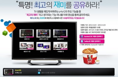 홈페이지에서 (http://tvg.uplus.co.kr) 정보 알아보다가 KFC 이벤트를 하더라구요~
