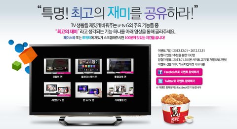 u+tv g가 맛있는 KFC치킨을 주는 이벤트를 진행중이랍니다~