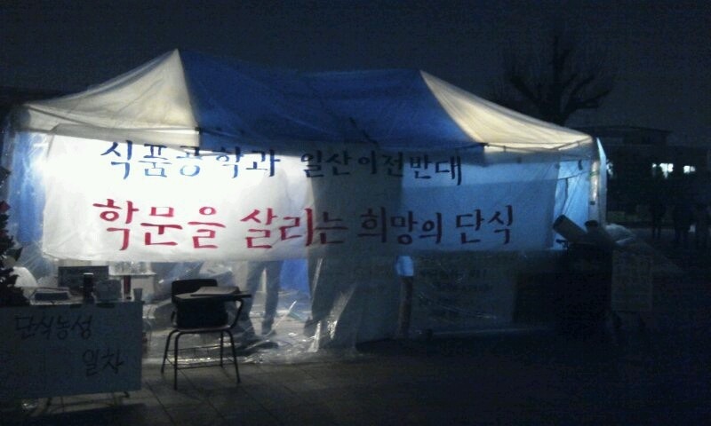 2012년 12월 11일 오후 12시, 식품공학과 학생회장이 무기한 단식 농성을 시작했습니다.요구안은 다음과 같습니다.