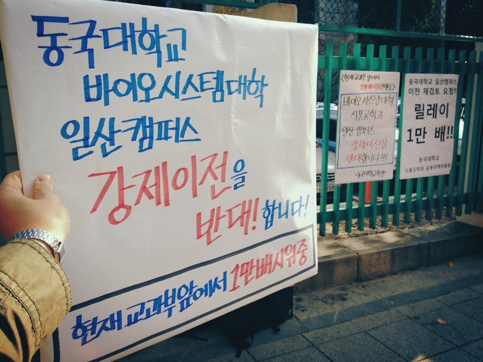 학교측에 11차례 공문을 전달하고 논의 자리를 마련하자고 했으나 이는 단 한차례도 받아들여지지 않았습니다. 학생들은 애초 계획을 승인한 교과부에 이를 재검토해달라며 교과부앞에서 릴레이 1만배를 진행하였습니다. 하지만 학교는 학교의 명예를 실추했다며 총학생회장과 식품공학과 학생회장에게 징계를 내렸습니다.