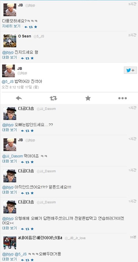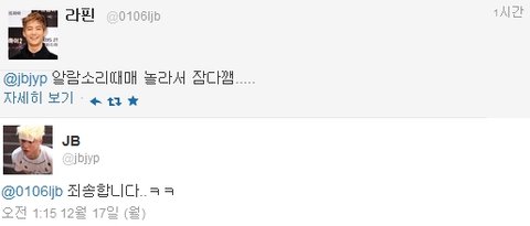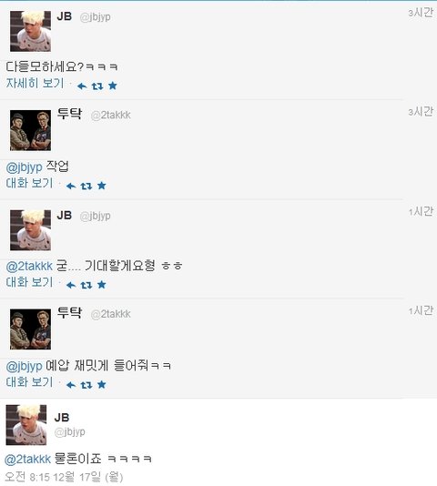 "전 연습이요ㅠㅠ 헝"이라고 말하는 JB
