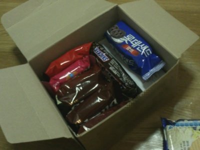 남친은 조용히 과자를 다 상자에 담고 품에서 과자 외에