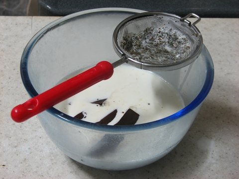 향신료 또는 차를 넣으신 경우에는 위 사진처럼 가는 체를 놓고 크림을 부어 주시면 된답니다.