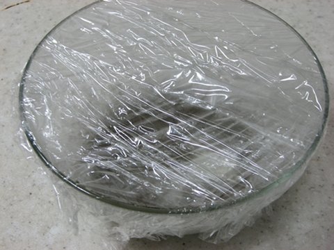 가나슈에 착 달라붙도록 랩을 씌우고 냉장고에 넣어 식혀 주세요.