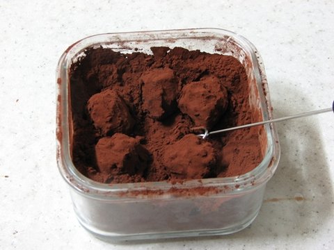 5. 모양 잡은 가나슈를 준비해 두신 가루에 굴리고, 여분의 가루를 톡톡 털어내면 완성 :)
