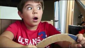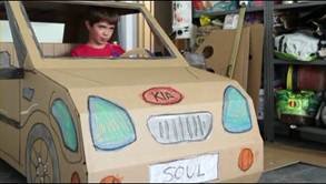 종이박스를 이용해 자동차 만들기에 성공한 아이
