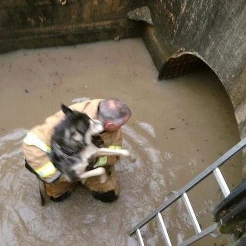 5. 허리케인 샌디 이 후 하수구에서 개를 구하는 소방관