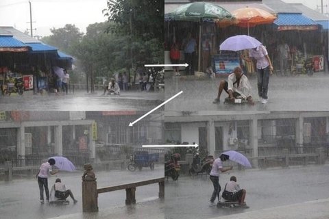 11. 한 장애있는 노숙자가 비에 젖는 걸 막아준 여자