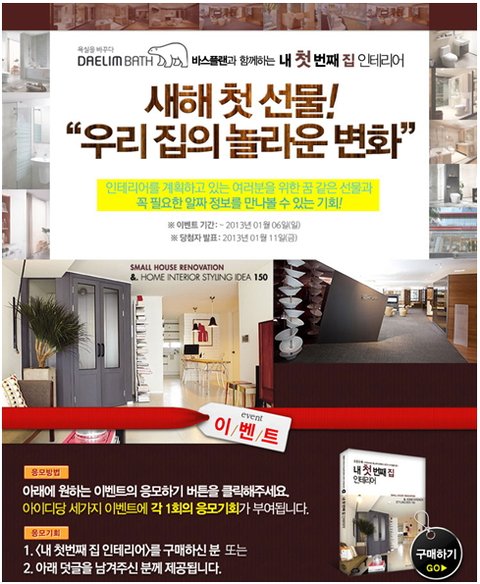 [신혼집인테리어] 내 첫 번째 집 인테리어 서적 구매 하면 욕실 변경 기회를 제공해 준데요!!~