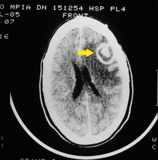 이 사진은 톡소포자충에의한 뇌종양 사진입니다.