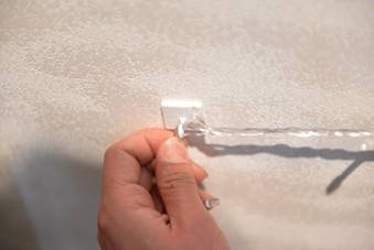 조그만 벽고리를 활용해서 전구 줄과 와이드모루를 함께 걸어주게 되면