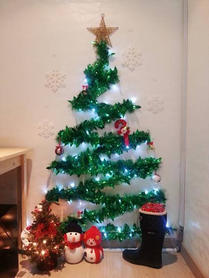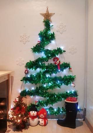 벽에는 눈송이와 트리 중앙에 별로 포인트