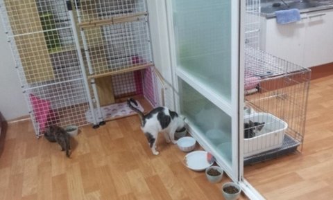 쉼터에 들어온 아이들중 순한 아이들은 풀어놓고 사납거나 아픈 아이들은 격리를 하면서