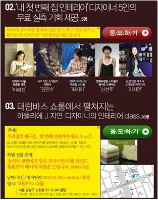 이외에도 책에서 소개된 5명의 디자이너가 자신의 집의 인테리어를 카운셀링 해주는 혜택과