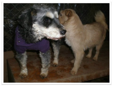 위에서 인사했던 착한 슈나 입니다.. 뒤에 있는 녀석은 제칭구 덩달이 입니다..우리 엄청 친해요.