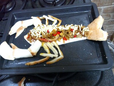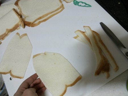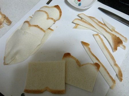 식빵은 눌러서 얇게 핀 후 윤곽을 잡아보기 위해 대충 배치해 보았음