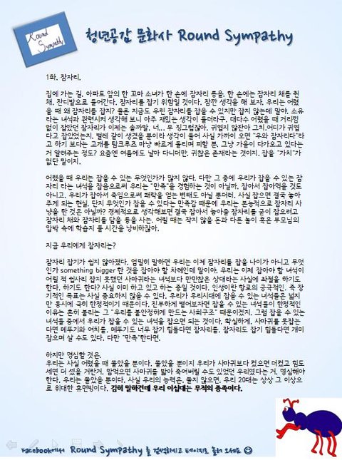Round Sympathy 다양한 컨텐츠로 대한민국 20대의 소통과 공감을 하기위해 목적을 두고 있습니다.