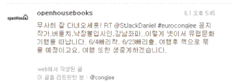 그리고 출판사 측에서 여행 후 책 출간 계획을 밝힌 2011년 6월 1일자 트윗에 공지영(congjee)이 RT하기도 했습니다.
