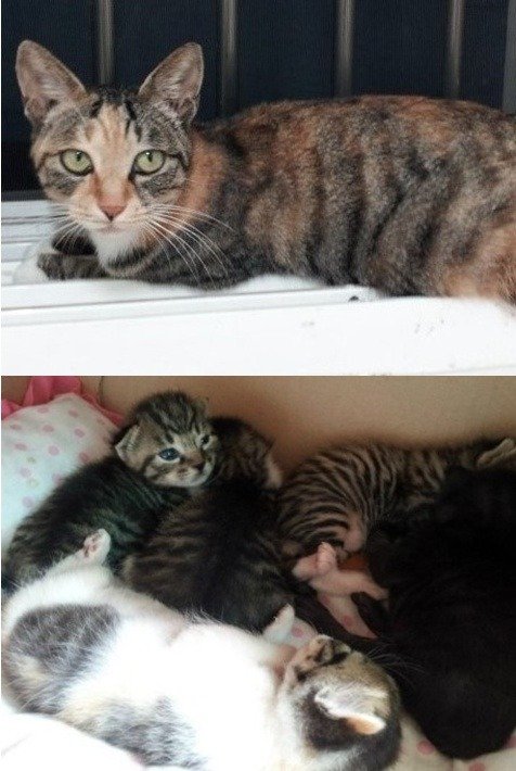두달전쯤 천안보호소로 들어온 만삭인 사랑이와 아기들이예요(남아4 여아1)이제 길에서 떠돌지말고 사랑받고 지내라고 사랑이라고 불르고 있어요