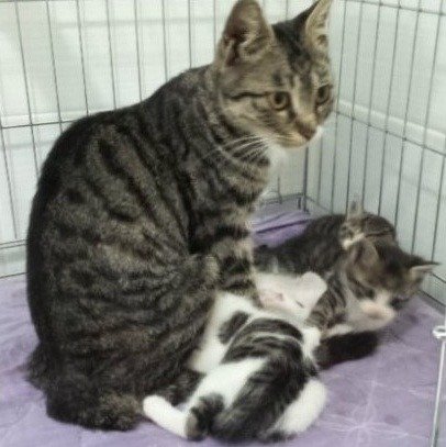 아는분께서 다니는 공장에서 밥주던 모녀인데..회사에서 밥을 못주게해서 구조를 했는데 다른 아기들은 입양이 됬고