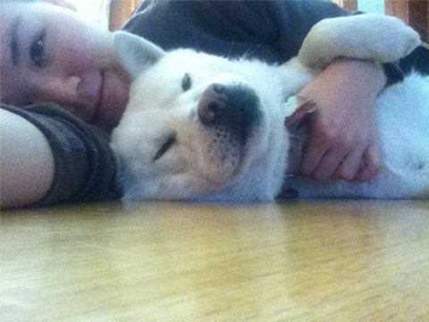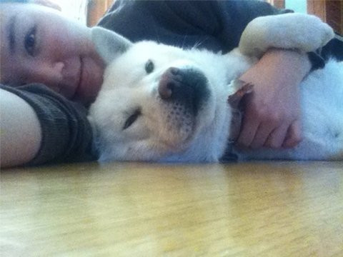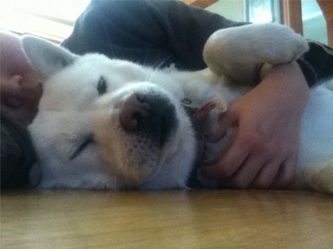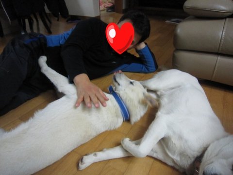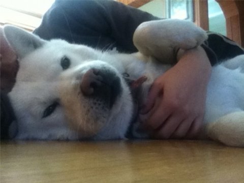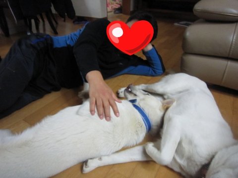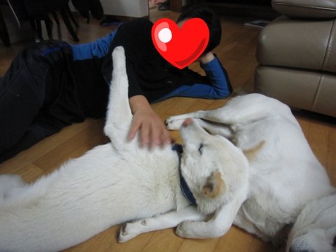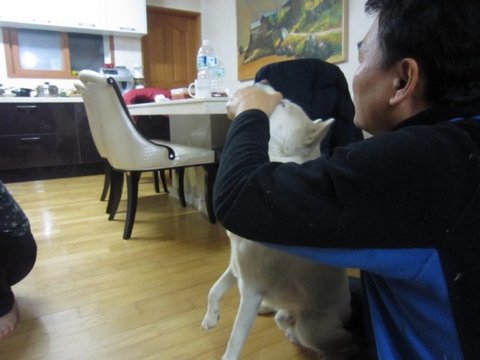 다먹은 두비는 아빠의 이쁨을 받고있음.ㅋㅋ