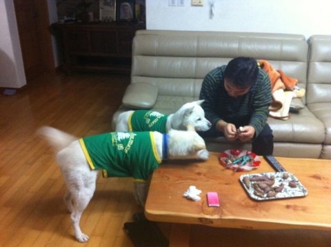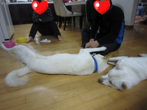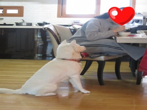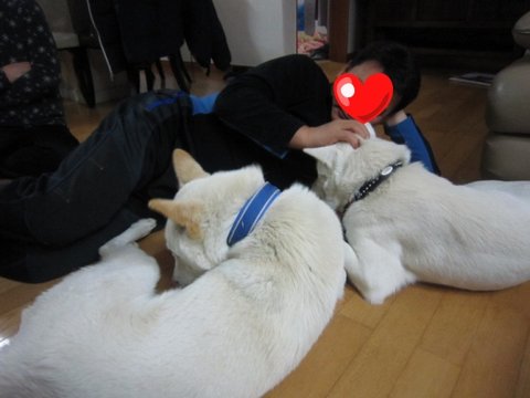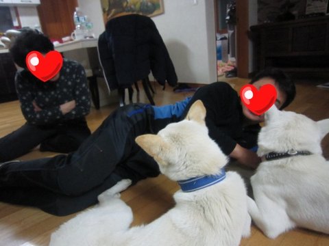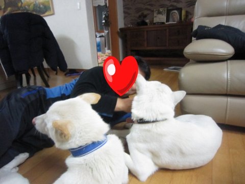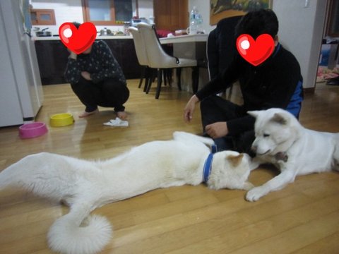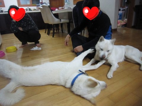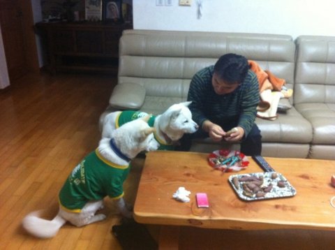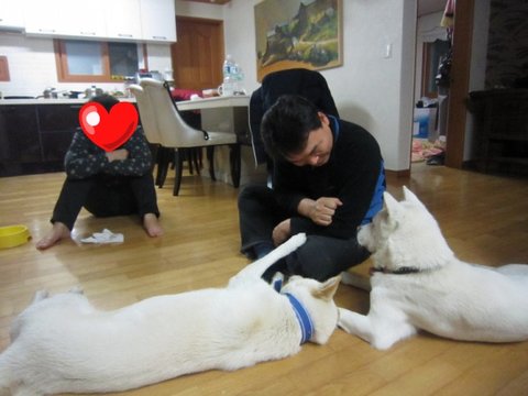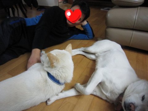 어느새 두비가 아빠한테 와서 애교부리고있음.ㅋㅋㅋ