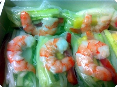 라이스페이퍼 야들야들하게 한다음에 새우넣고 손질한 야채들 넣고 돌돌돌 말아주시면 끝이랍니당~
