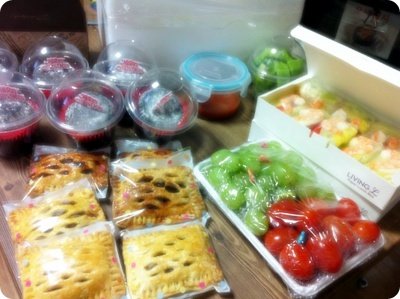 맨 뒤에 아이스박스에 등갈비바비큐 식지 않게 포장하고, 컵케익과 파이는 개별포장하고, 후식으로 먹을 과일들과 월남쌈 그리고 특제 소스까지^^ 종이백에 담고, 아이스박스는 리본 포장해서 남자친구 출근길에 보냈어요. 야간근무하다가 먹고~ 조금 넉넉히 보내서 컵케익과 파이는 아이들 있는 동료분이 가져가신다고 했는데..자고 일어나보니 누군가 새벽에 다 먹어치웠다는..ㅋㅋ 다들너무감동받았다는 문자에 제가 더 감동받았다는..ㅋㅋ